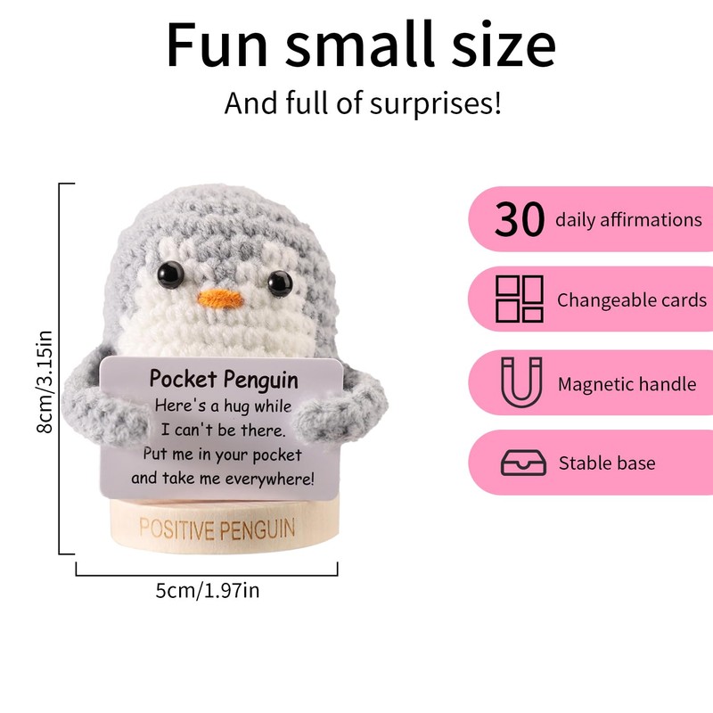 TOYMIS Positive Penguin with Wooden Base, Magnetic Crocheted Penguin 30 Positive Emotional Cards from Your Best Friend Creative Support Knitted Animals Desktop Decor Funny Xmas Graduation Gift