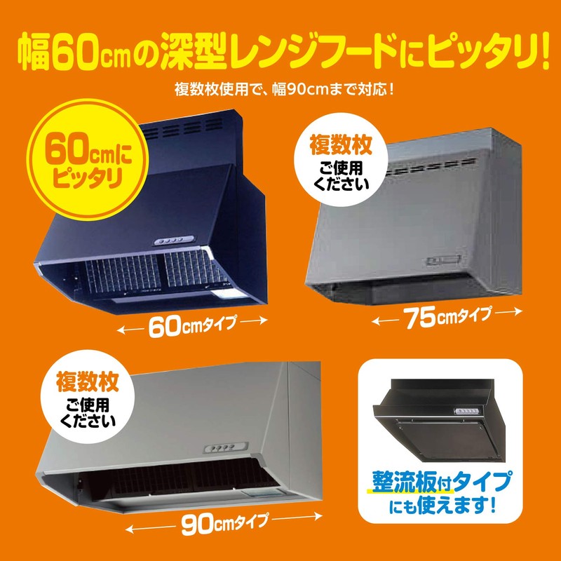 Product Details: "Toyo Aluminium Range Hood Filter 23.6 inches (60 cm) Set of 6" is a simple adhesive type filter that sticks perfectly to a 23.6 inches (60 cm) wide range hood. Easy to install like a seal.It is even easier to apply with the newly added holes to clip onto the hardware of the range hood.It tells timings to replace the filter.-1. The fan of the range hood is completely stopped.2. The stove is off.Please do not use in places that are directly exposed to fire.Please do not use when you use alcohol in the cooking that might cause big flame. It might create holes on the filter, or developing a risk of catching fire through the oil on the filter.According to the Fire Prevention Ordinance, "The product must be used at a distance of 3.3 ft (1 m) or more from the cooking equipment.