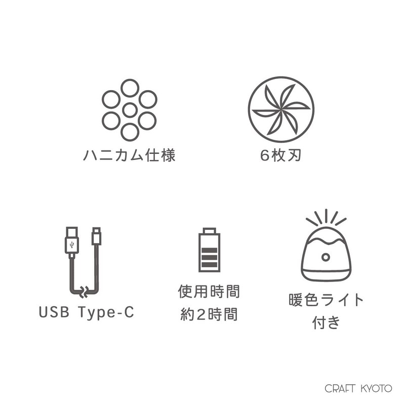 • Comes with a safety device that does not operate while the cover is open; Battery: Lithium ion battery; Rated capacity: 800Ah; Charging time: about 1 hour; Usage time: about 2 - 3 hours; Power supply: DC 5 - 0.8 A; Power consumption: about 2 W; USB: micro-type C