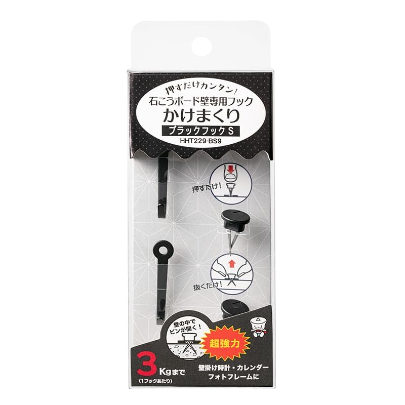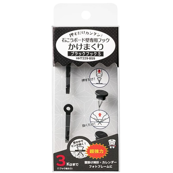 - Color: Black; Uses: Calendar, Wall Clock, Photo Frame, Frame, etc. Vertical Load Limit: Up to 6.6 lbs (3 kg) per hook; Size: Width 0.3 inches (8 mm) x Length 1.3 inches (3 mm); Set Details: Hook main body x 2, Hyperpin pin pin pin x 2, Hyper pin pin head x 2, push aid x 1. Material: Hook body stainless steel, hIPS resin