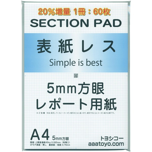 Toyoshiko Square Report Paper, Omote Coverless Section Pad (A4 Squared, Extra Thin, 60 Sheets x 2)