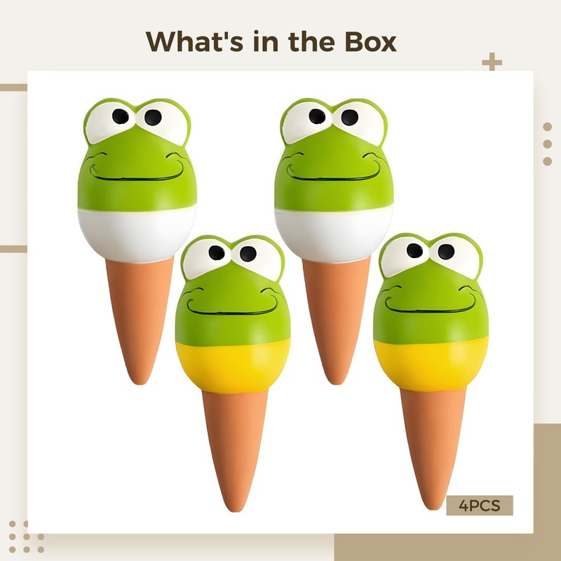 Toyosport 4 Pcs Self Watering Devices, Ceramic Self-Watering Stakes, Watering Station for Garden, No Installation Required, Hand-Painted, Frog Shape