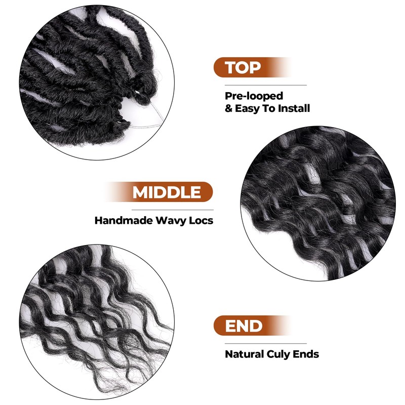 Toyotress Deep Wave Locs Crochet Hair - 14 Inch 8 Packs Curly Faux Locs, Natural Black Ocean Wave Pre-Looped Short Soft Braiding Hair (1B-8P)