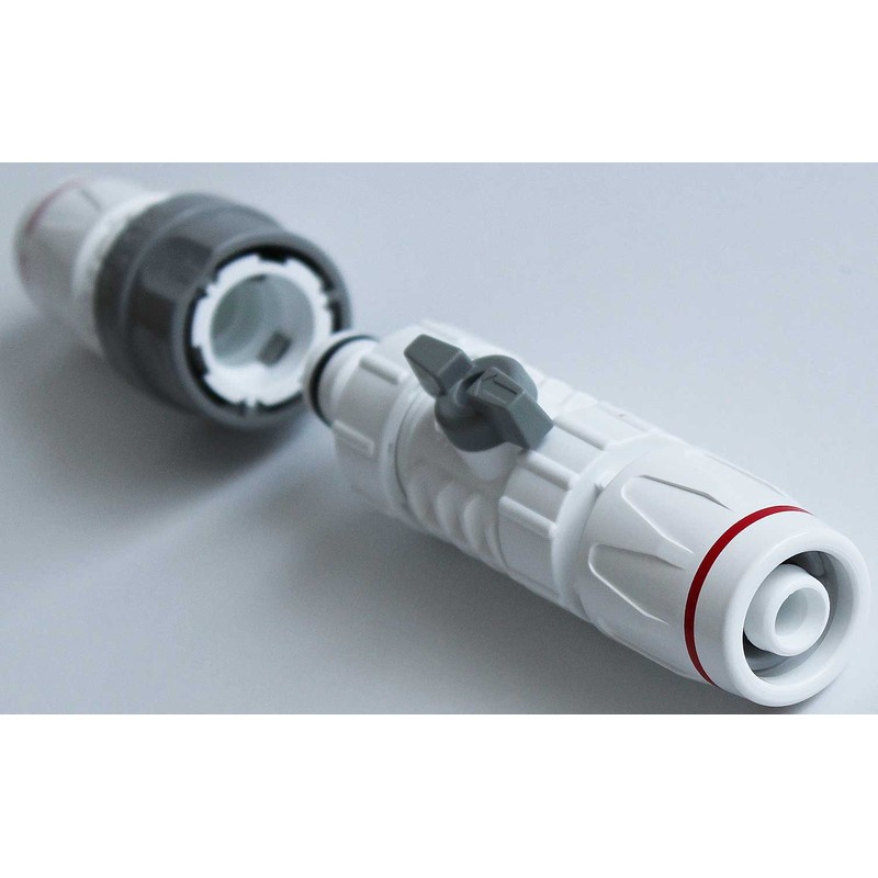 • One-touch intermediate fitting with flow adjustment and stop function