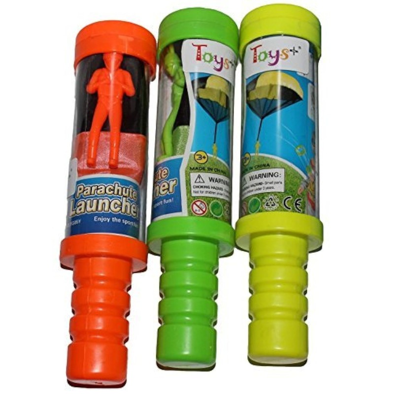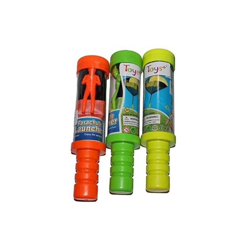 Toys+ Skydiver Parachute Men 3 Piece Set- Tangle Free with Launcher containers (Colors and Styles May Vary)