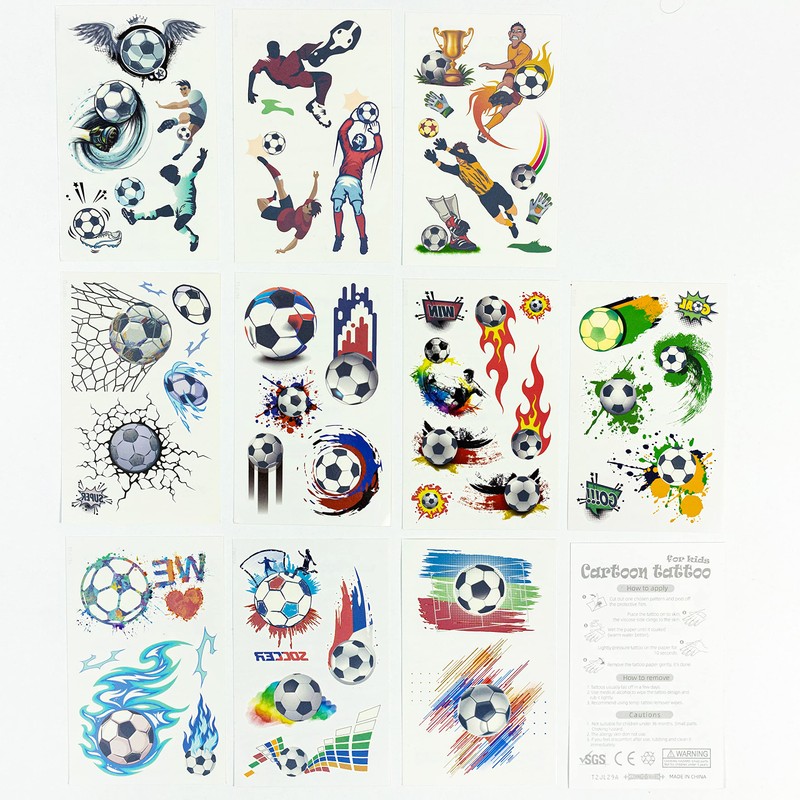 - PACK OF 30 SHEETS - Each pack has 30 sheets of football tattoos (10 designs x 3)