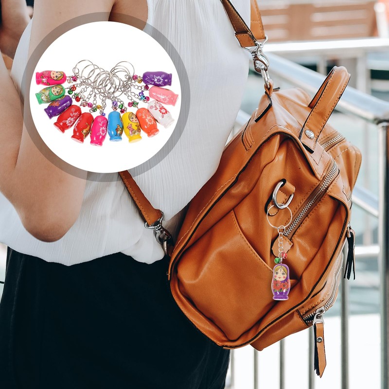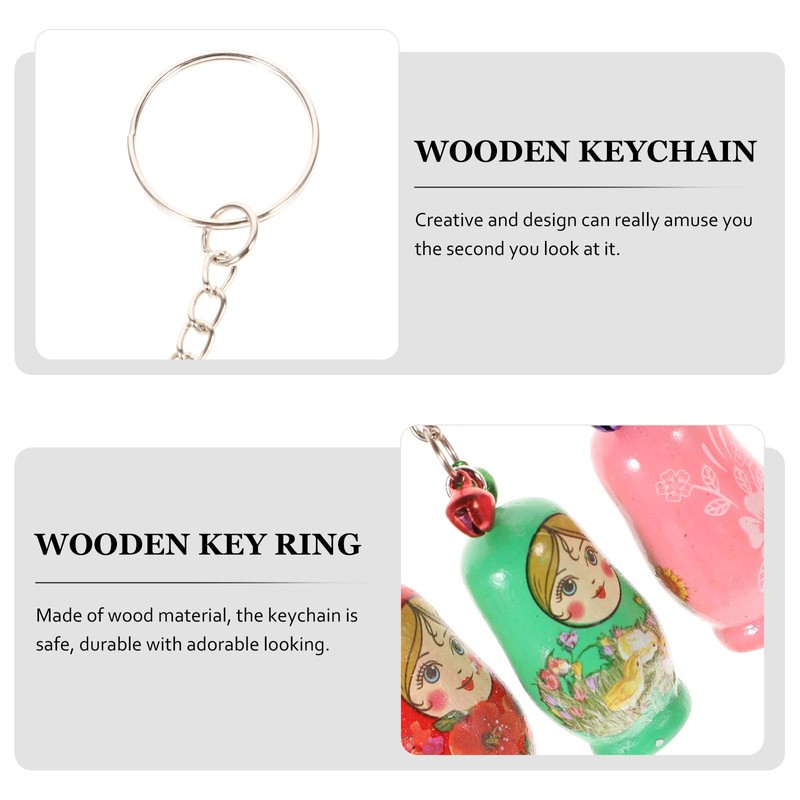 Toyvian 12pcs Matryoshka Key Ring Wooden Mini Babushka Dolls Wooden Toy Bag Pendant Car Key Pendant Key Ring Party Bag Random Pattern