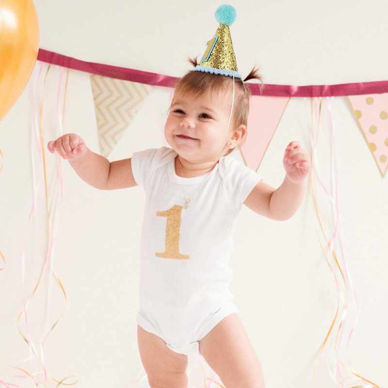 Nothing makes your baby's birthday party photos more fun, or the star of the party more stylish, than a color coordinated party hat. This baby 1st birthday party cone hat is an exclusive design to match your party theme. They feature sparkly, number 1 on the hat. An elastic chin string is equipped with to keep the hat in place. for the birthday party of your sweet baby, helping to create memorable memory.