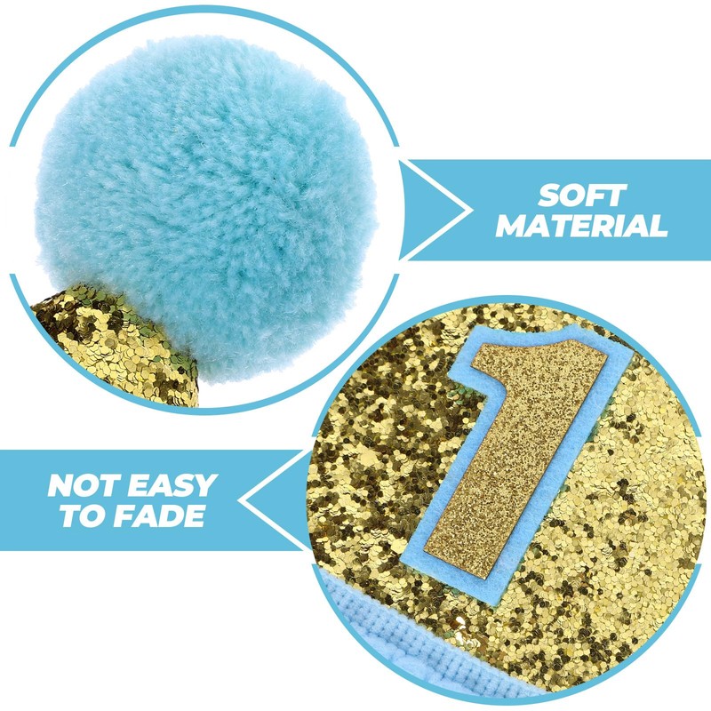 Toyvian 1st Birthday Hat Glitter Cone Hat Adjustable Tiara Headbands Sparkle Princess Birthday Hat for Baby Girl Boy Party Supplies 1st Birthday Decor(Blue)