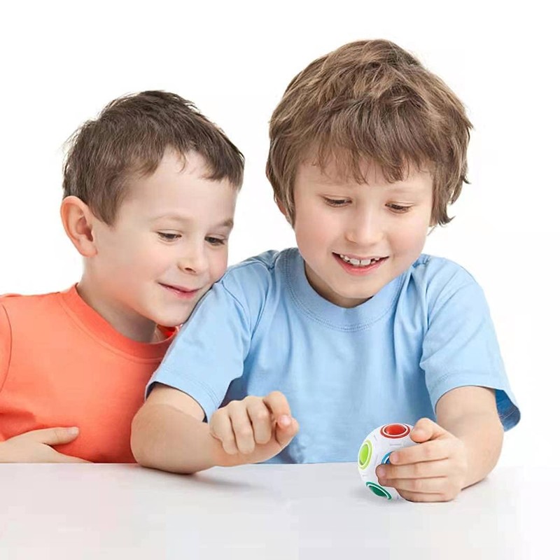 Our Magic Fidget Rainbow Ball is a great fidget puzzle toy, not as difficult as a speed cube, but not that easy either. It is a great brain teaser challenge.