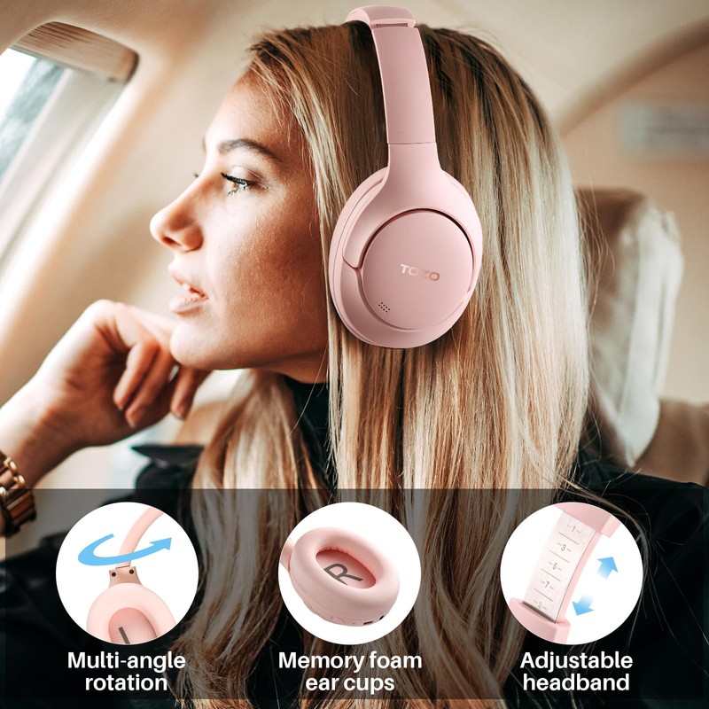 - [All-day Comfort & Adjustable Design] TOZO HT2 uses ultra-soft protein leather earcups, which allows you to wear it for a long time without feeling uncomfortable. The earmuffs can also automatically adjust the angle to suit users with different head shapes. Making them the ideal headphones to work from home or watch your favorite movie.