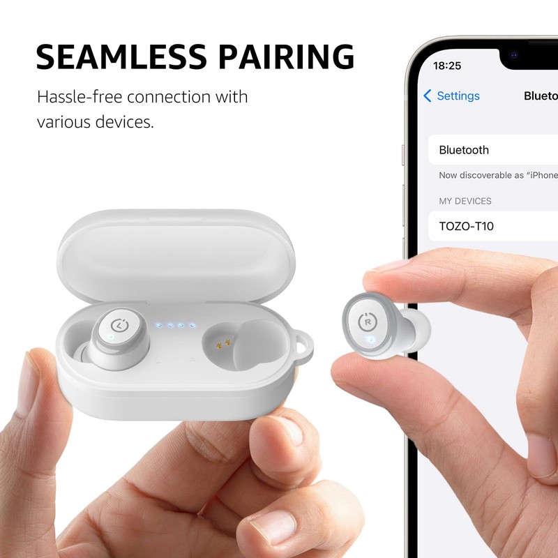 - [Designed for Portability and Lightweight] TOZO T10 Wireless earbuds are small and lightweight with a compact case, offering you a whole new wearing experience, making it burden-free on your ears to enjoy music with your earphone on the go. Plus, it also comes with a lanyard, allowing you to easily carry them without worrying about occupying space in your bag or pocket.