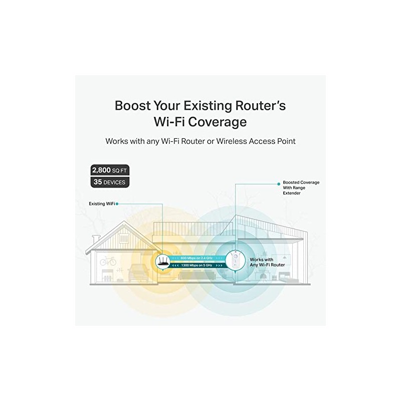 - Extend WiFi Coverage: Boost WiFi coverage up to 2,800 sq.ft. and connect up to 35 devices - Compatible with any WiFi Router, Gateway, Access Point (2.4GHz - 600Mbps / 5GHz - 1300Mbp)