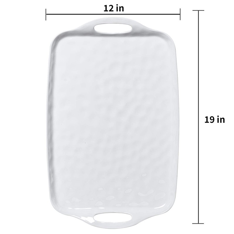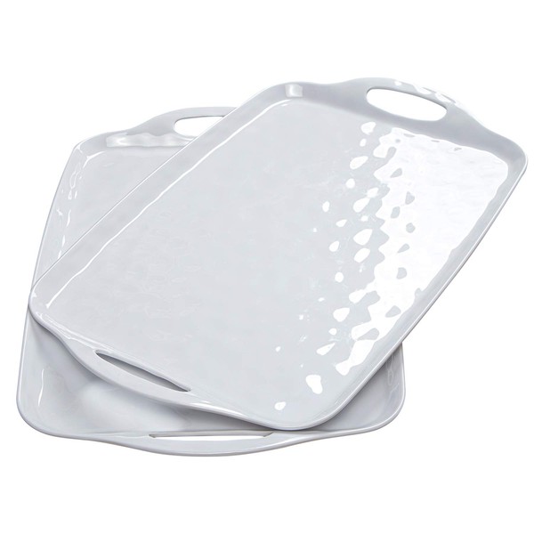 TP Serving Tray with Handles, Large Rectangle Melamine Serving Platter Set of 2, Pure White (19” x 12”)