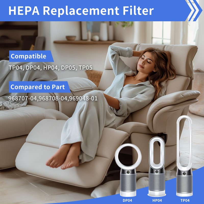 - 360°Combi Glass HEPA & Carbon Air Purifier Filter is exclusively compatible with Dyson HP04, TP04, DP04, TP05, DP05. Compared to Part # 968707-04, 968708-04, and 969048-01. Please confirm your model is TP04 HP04 DP04 TP05 and DP05 before order