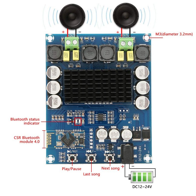 - GOOD FEATURE: This amp board integrates CSR865 4.0 Bluetooth module, with low power consumption, high efficiency, good compatibility.