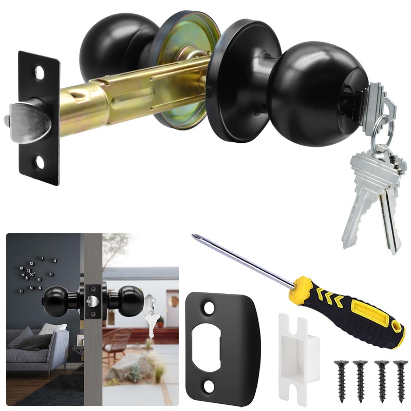 - 【Easy To Install】: Our long 5" latches set fits standard prefabricated doors with 2-1/8" diameter cross bore hole on the face and 1" diameter edge bore hole on the door edge. Fits standard door thickness: 1-3/8" to 1-3/4" (35mm- 45mm); Package includes interior and exterior ball door knob×1, 5" backset entry door latch×1, brass keys×3, door lock strike plate×1, screwdriver×1, instructions×1 and necessary accessories. Replacement is very simple, install your knob set in a flash by yourself.