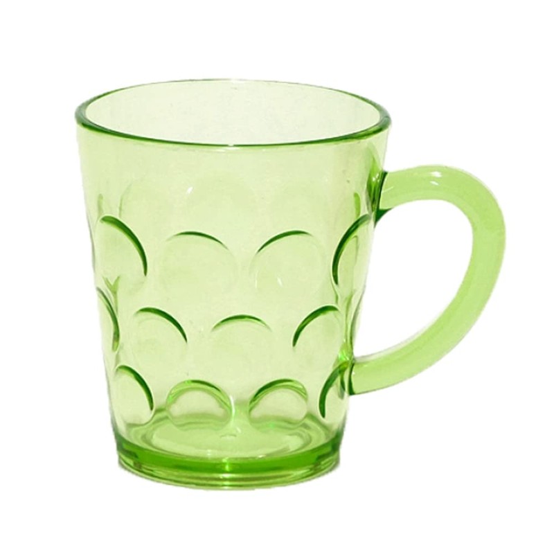 TPBD03950Green Dotted Plastic Cup with Handle Transparent Clear Unbreakable (...