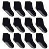 - ENJOY SIZE AND COLOR VARIETY: Package includes 12 pairs of baby kids non slip crew socks(Black, White, Gray, Blue, Navy, Dark gray) to easily match with multiple outfits. The colors are cute and vibrant, bring more fun to kids. They comes in size 6 months to 7 years. Age 6-12 months (size 4-6), 12-36 months (sizes 5-9), 3-5 years (size 9-11),and 5-7 years (size 11-13)Perfect for active infants baby toddler kids