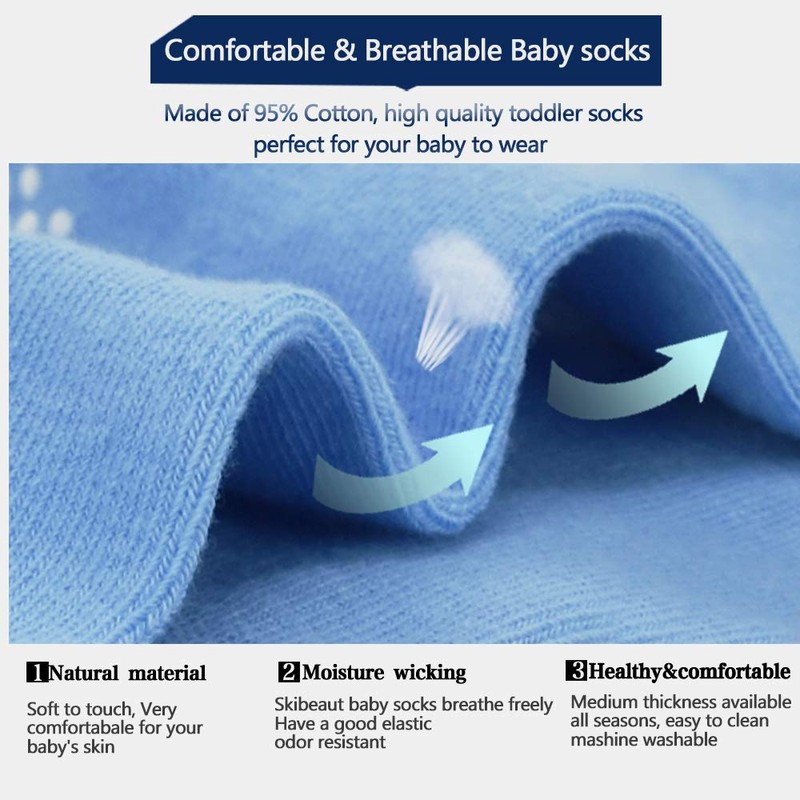 - SKIN-FRIENDLY FABRIC: Considering the soft skin of babies, the elastic around ankle area is not tight. Cotton-rich fabric offering all day comfort, breathability and softness to baby`s and toddler’s foot. Stretchy material provides a good fit to grow with your child. Medium thickness makes these baby infant toddler anti-skid socks suitable for all seasons