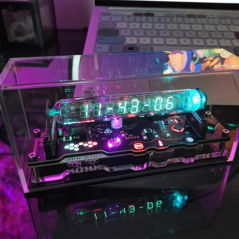 TPHRAVAL Imitation Nixie Tube Clock Fluorescent Tube Clock Cyberpunk Ornaments IV18 Fluorescent Tube Clock can Display The Date, time, and Temperature Creative Gifts