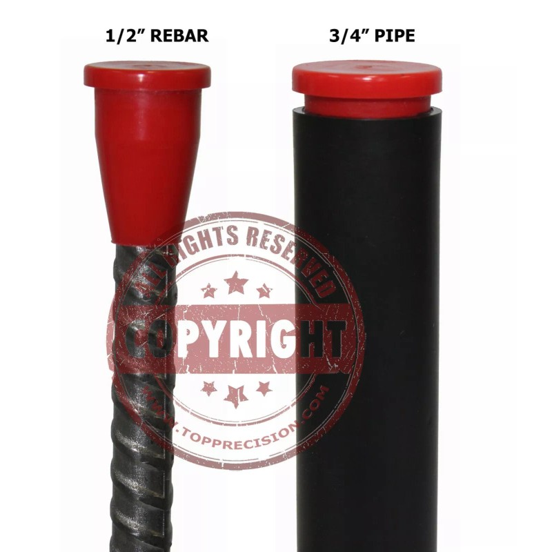 1/2 Inch Red Control Survey Marker Caps hold up against chemical exposure and temperatures ranging from –40° to 150°F. Can be driven in to a 3/4" pipe or used over 1/2" rebar. This listing is for 10 caps, stamped "CONTROL" as pictured.