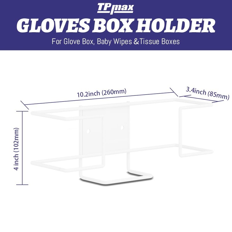 - Conveniently store and dispense up to 1 gloves or facial tissue box with white powder coated heavy-duty all-steel Gloves box wire rack.