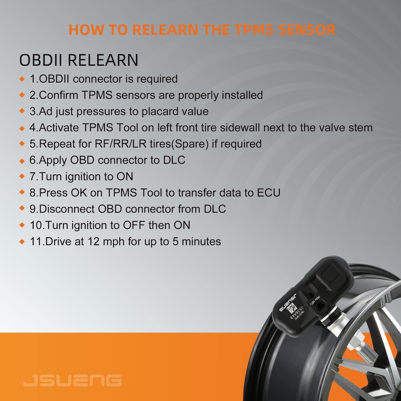 - 【1-Year Warranty】: All Jsueng tire pressure monitoring system sensors meet international standards, and have established a technical research and development department with extensive experience to better serve the markets.