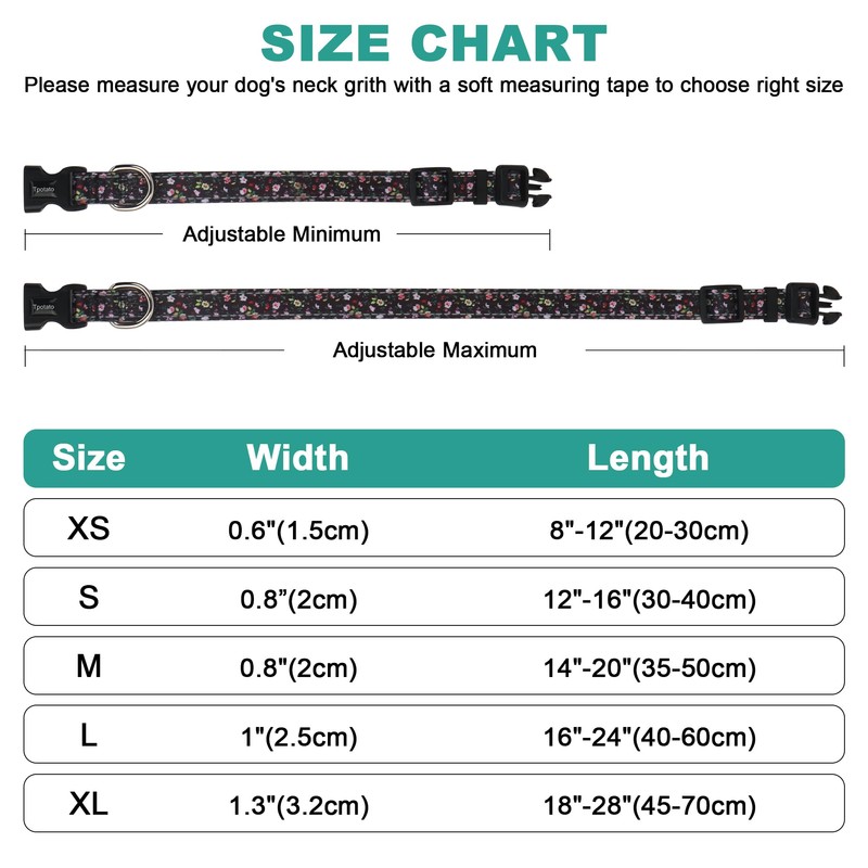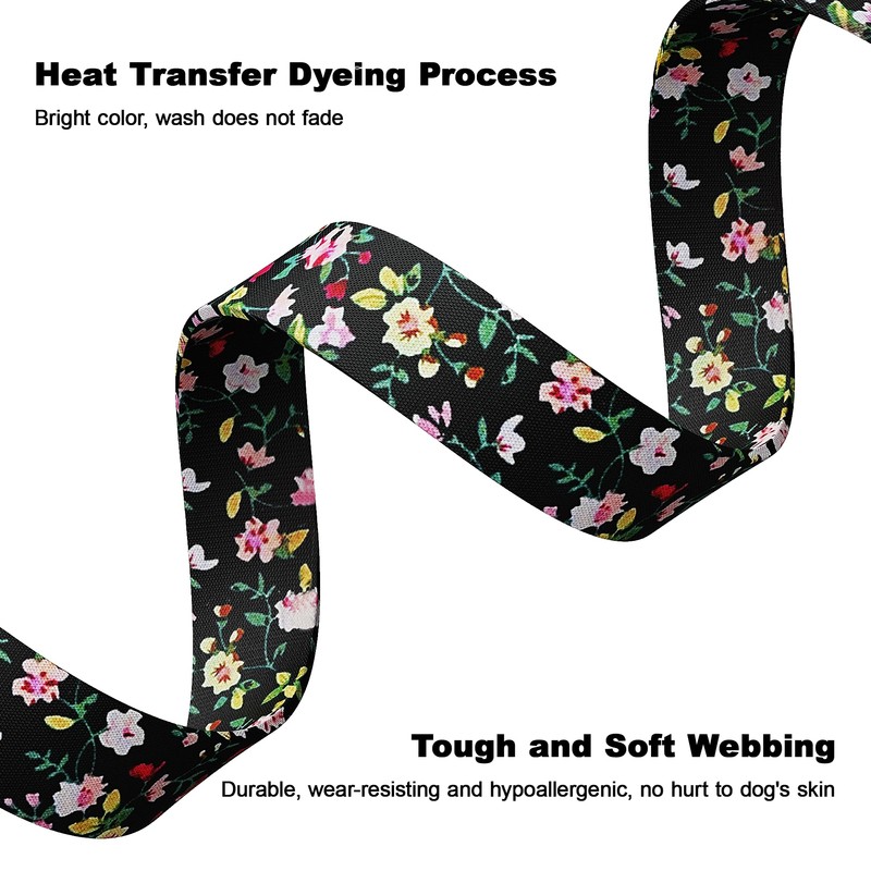 - 【Newest Pattern Design!】 Floral dog collar is designed by a French senior designer based on the popular elements of the season,and uses the newest thermal sublimation transfer process to specifically solve the problem of washing and sun fading.The clear and vivid flower pattern on the collar instantly make the dog elegant,suitable for all female,girls,male and boys dogs.Fashion cutting edge design of the flower dog collar is very beautiful and cute,make your dog stand out from other pets.