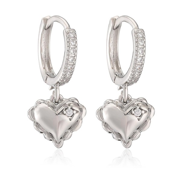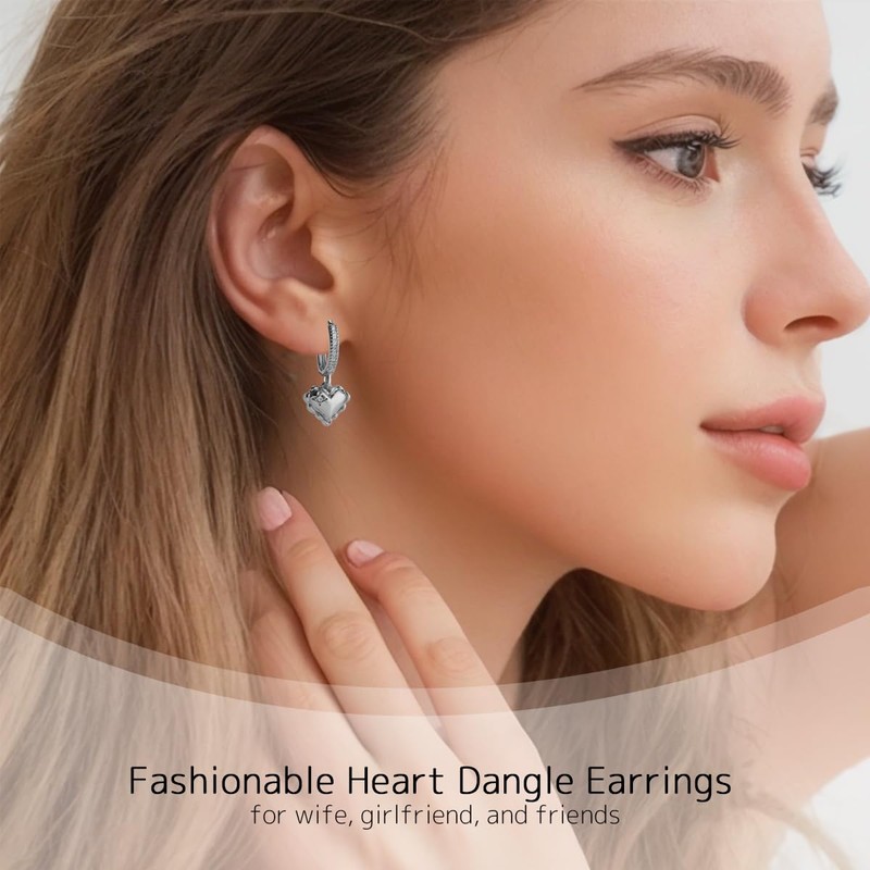 - Premium Material: Our Silver Heart Dangle hoop stud earrings for women are carfted with quality 14K Silver plated stainless steel metal, lead-free, nickel-free and hypoallergenic. Lightweight and easy, comfortable to wear everyday without causing any skin irritation.