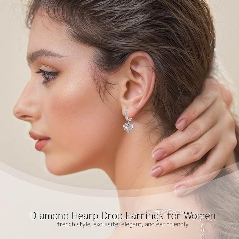 - Silver Heart Dangle Hoop Earrings: These trendy Heart Dangle Hoop jewelry features a classic Silver Heart Dangle Hoop design, which complements any unique style, adding a touch of understated glamour to any outfit and making you shine and bright.