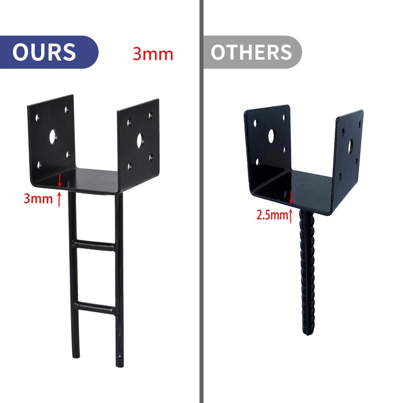 - 【11 GAUGE SUPERIOR QUALITY MATERIALS】Compare to other 2.5mm thickness post base.TPSHKE post base made of 3mm thickness high-strength galvanized steel plate,package includes 4 post bases, 32 pcs M6x40mm hexagon self-tapping screws and 4 pcs M10x120mm screw nuts