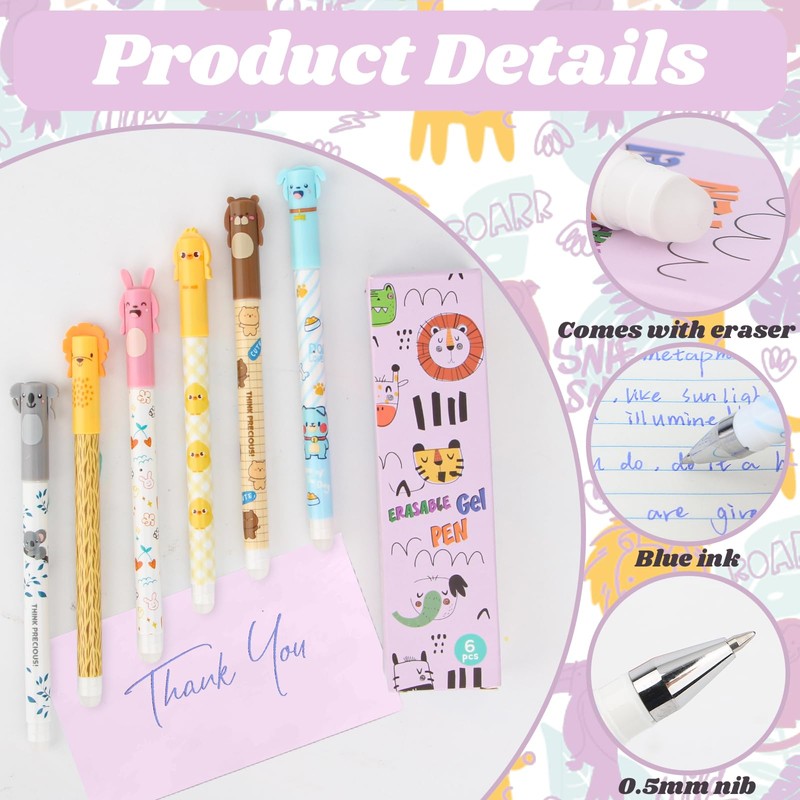 - 【Erasable Pen Set】The package contains 6 animal erasable pens cute. The unique design is very interesting, allowing children to enjoy the fun of writing while developing a habit of writing.