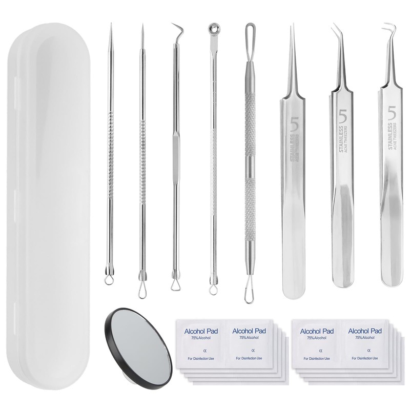 - 【Mitesser-Entfernungsset】Die Verpackung enthält 8 mitesserentferner pinzette in verschiedenen Größen, eine 5-fache Lupe und 20 Alkoholtücher. Die Nadel ist ein speziell für die Hautpflege entwickeltes Werkzeug, das hilft, Mitesser und Hautunreinheiten zu entfernen und die Haut sauber zu halten.