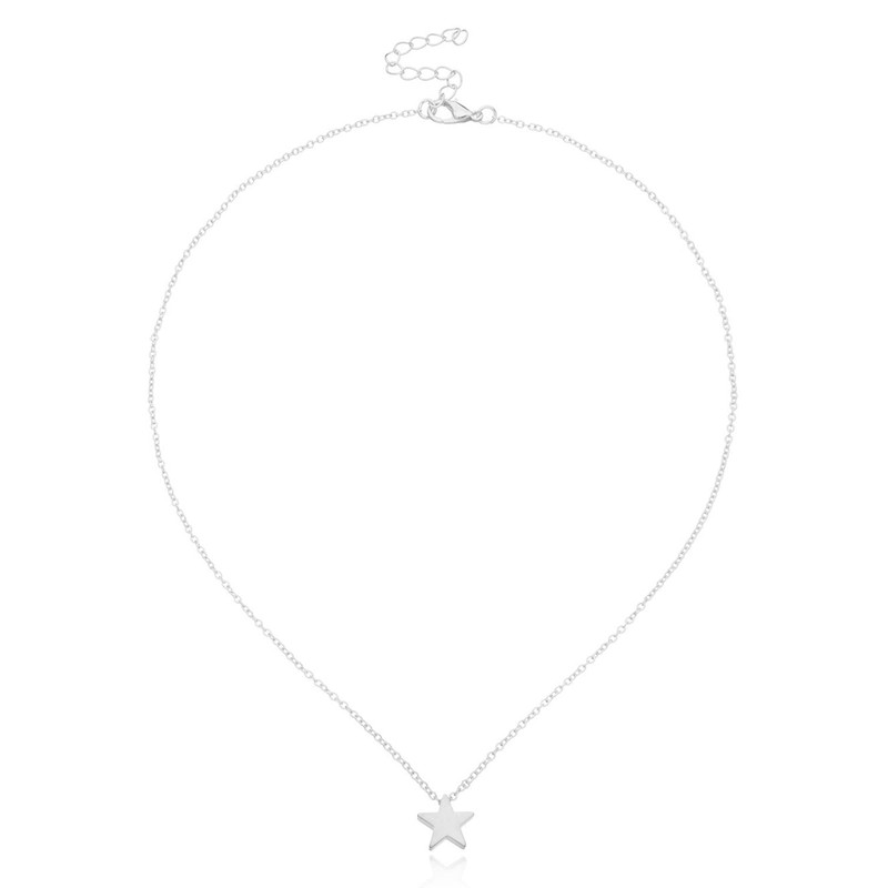 - Schlichte Halskette, Halskette mit Sternanhänger. Kettenlegierung, Farbe: Silber, Größe: 45cm + 5cm