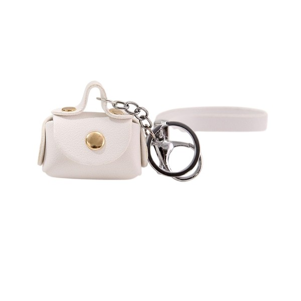 TPZORJX 1 Piece Women Mini Coin Purse Keychain Mini Storage Bag Key Chain Data Cable Storage Leather Keychain (White)