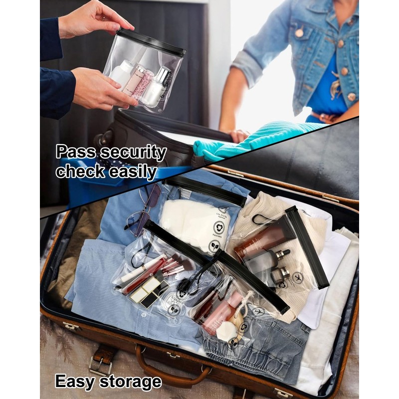- Safety certified: cosmetic bags are the perfect solution for liquids in aircraft hand luggage. These bags are leak proof, clear and TSA approved to save you the stress of your trip. Our clear sealed bags comply with most airport regulations around the world, so you can pass airport security quickly and easily
