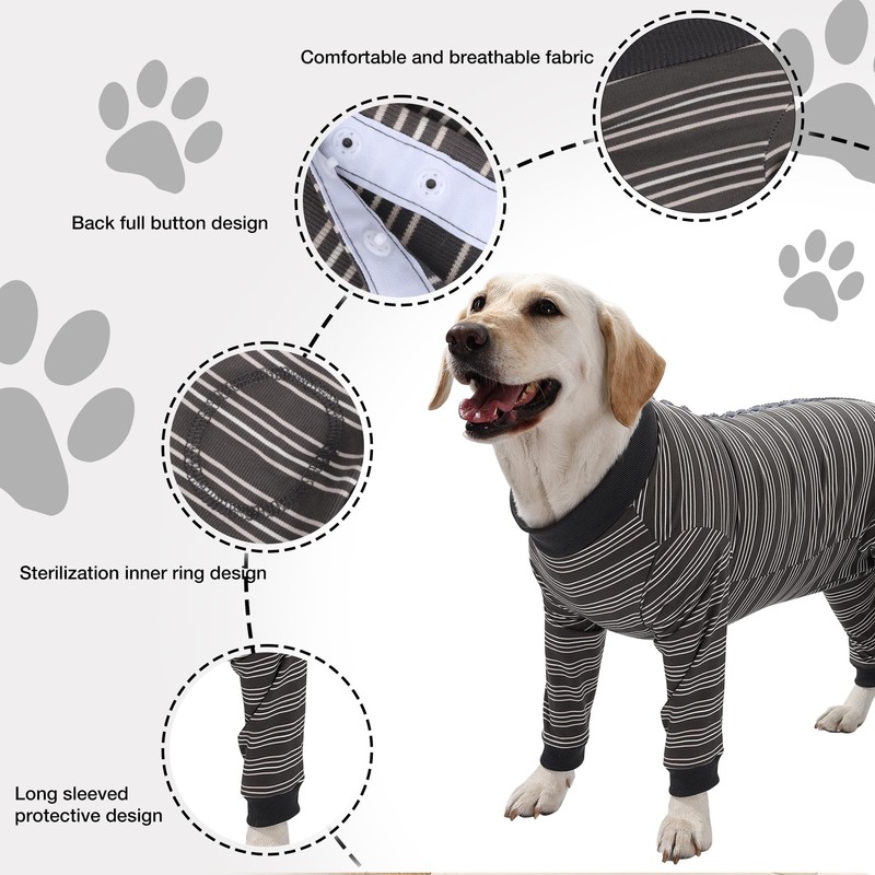 TQFlow Dog Recovery Suit, Pet Surgical Suits Medical Shirt for Female Male, Stripes Spay Suit for Wounds Protectation, Dog Cone E-Collar Alternative, Operative Onesie Bodysuits Shirts