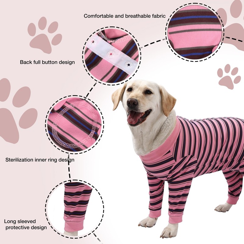 TQFlow Dog Recovery Suit, Pet Surgical Suits Medical Shirt for Female Male, Stripes Spay Suit for Wounds Protectation, Dog Cone E-Collar Alternative, Operative Onesie Bodysuits Shirts