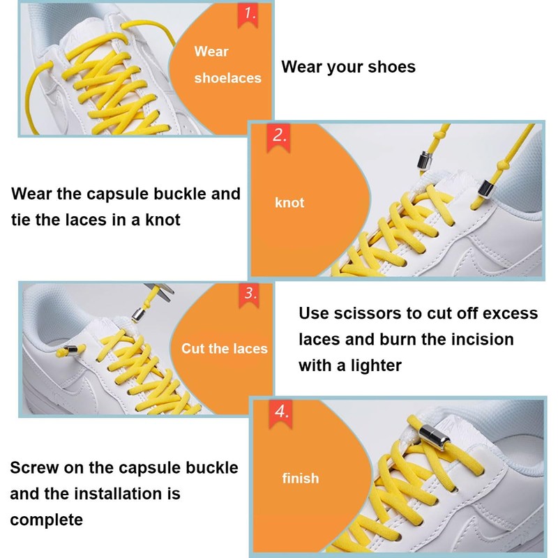 - 3.Easy to assemble: you can first thread the laces into the shoe hole and cut to a suitable length, then tie a knot and then tighten the metal buckle slightly. If you try to wear them on shoes with metal buckles, you will never go back to traditional laces.