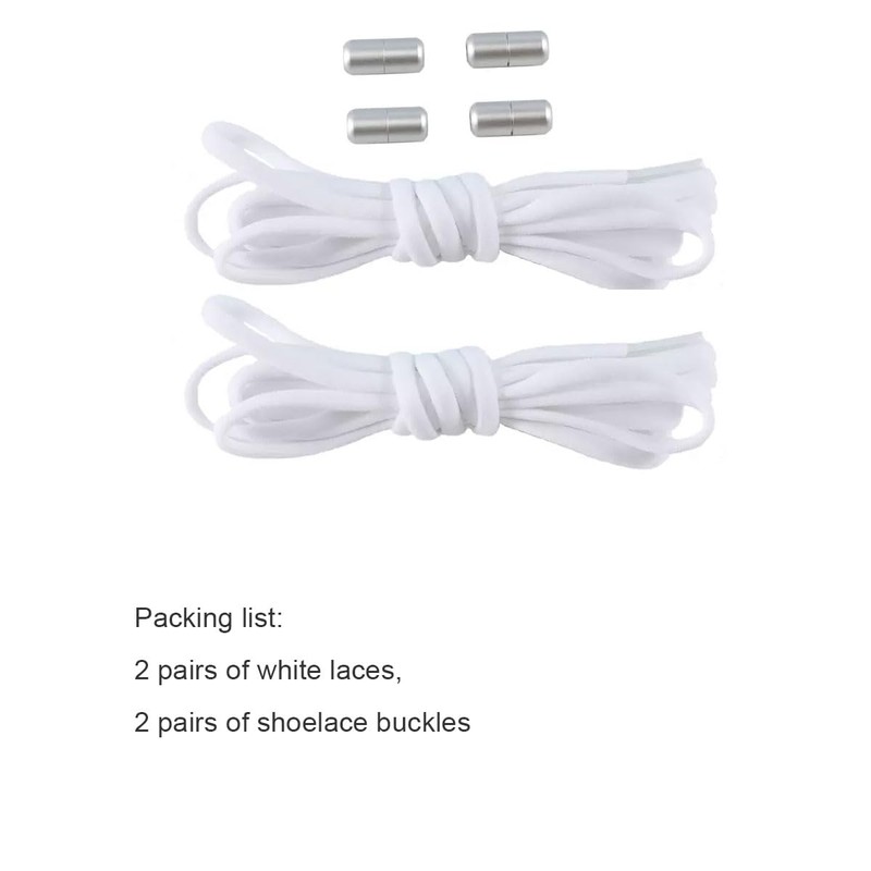 - 2.Includes 2 pair white laces and 2 pair metal capsules, each laces length is 100cm, the width is 0.6cm, made of durable polyester, with good elasticity, you can adjust the tightness according to your shoes, suitable for shoes with eyelets/eyelets only; These laces turn lace-up shoes into slip-on shoes, so you don't have to worry about loose laces and save you time.