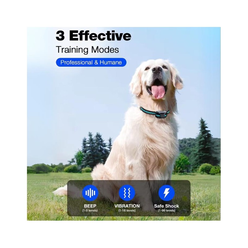 - Humane and Safe, Eliminate Bad Behavior Effectively: The Dog shock collar features 3 humane training modes with adjustable beep(1-8 levels), vibration(1-16 levels), safe shock(1-99 levels). It helps your unruly and hard-headed dogs learn to be a better part of your household.