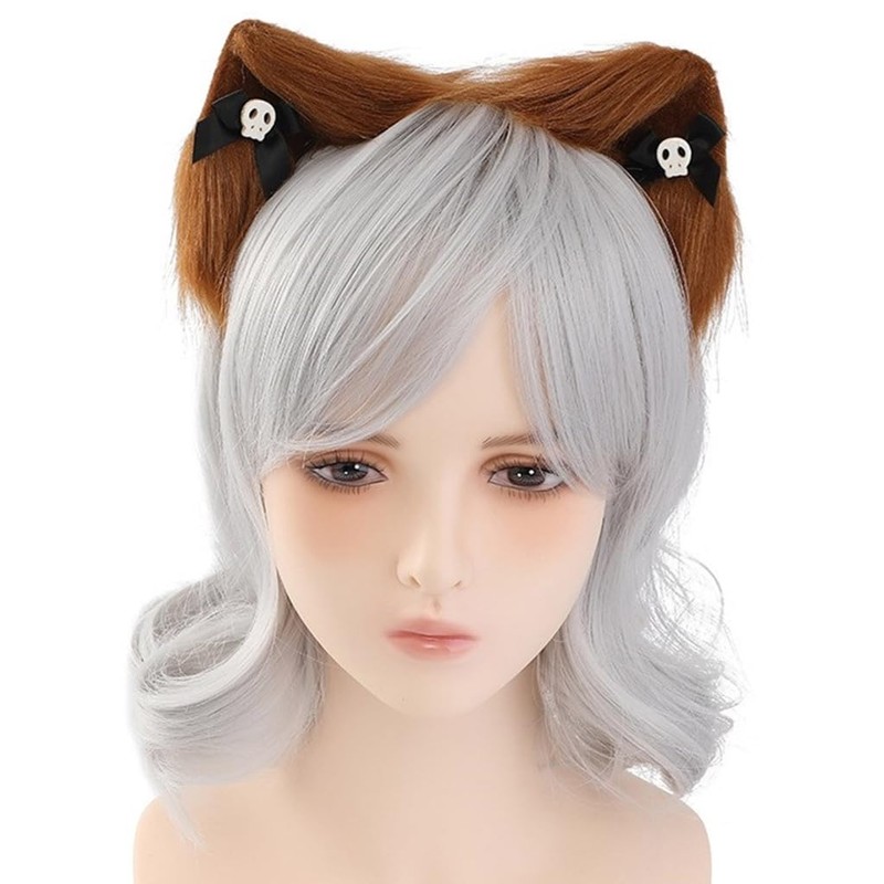 TQUXNGA Katzenohren-Haarbänder mit Totenkopf-Schleife, Anime-Themen, Versammlungen, Haarband, Film-Enthusiasten, Plüsch-Stirnbänder für Teenager und Erwachsene