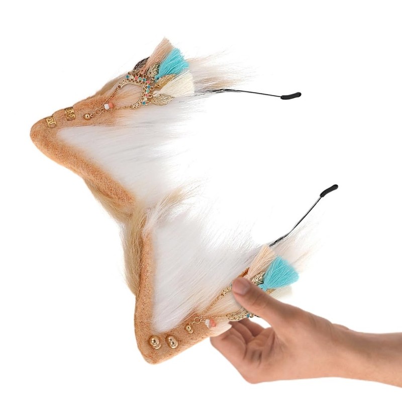 TQUXNGA Plüsch-Katzenohr-Stirnband mit ethnischen Ohrringen, Dekor, Plüsch-Katzen-Stirnband für Film-Enthusiasten, Erwachsene, Live-Übertragung, Kopfschmuck