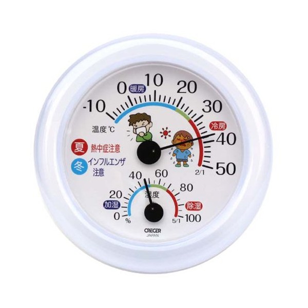 クレセル 室内用 温・湿度計 【熱中症・インフルエンザ・風邪対策】 ホワイト TR-103W