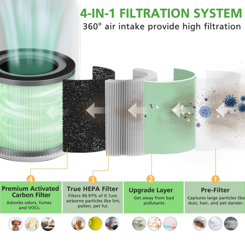 - đă4-Stage Filtrationă-- Replacement for Dreamegg TR-8080 air purifie-r filter is designed in H13 True HEPA Filter, high-efficiency activated carbon and fine Pre-Filter that work together to reduce airborne particles and unwanted odors in your living space for improved air quality, ideal for pet owners, smokers, and people who live in cities.