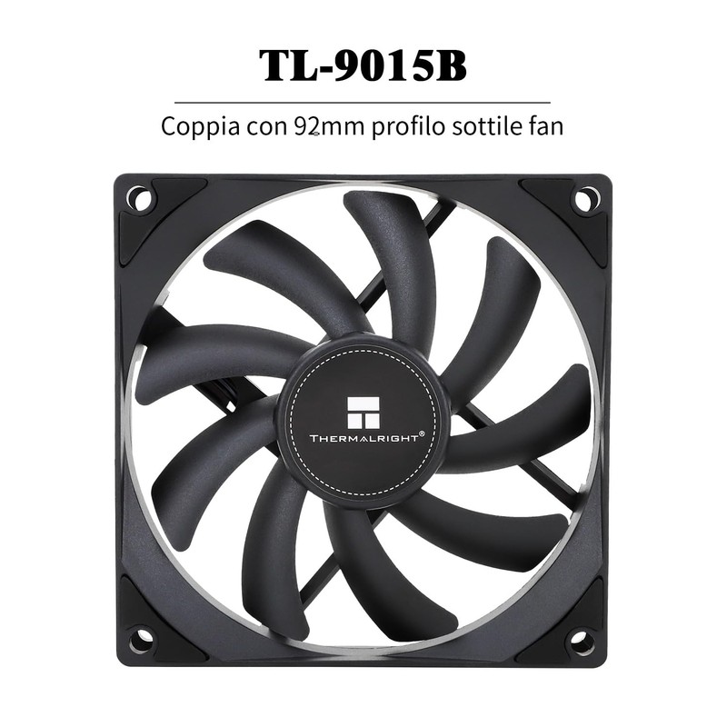 Parameters: Size: 94.5 × 95 × 36 mm. Fan: 92×92×15mm Air volume: 42.58 CFM (max). Air Pressure: 1.33mmH2O (Max) Speed: 2700 rpm ± 10 Noise level: 22.4 dB (A)Fan pin: 4 PIN PWMEMAL: AXP900. X36 Black × 1, fan TL-9015B×1, thermal paste TF7 × 1, fan buckle × 2, basket bottom × 1, nut × 2, long screw × 4, nut × 4, sleeve × 1, manual × 1