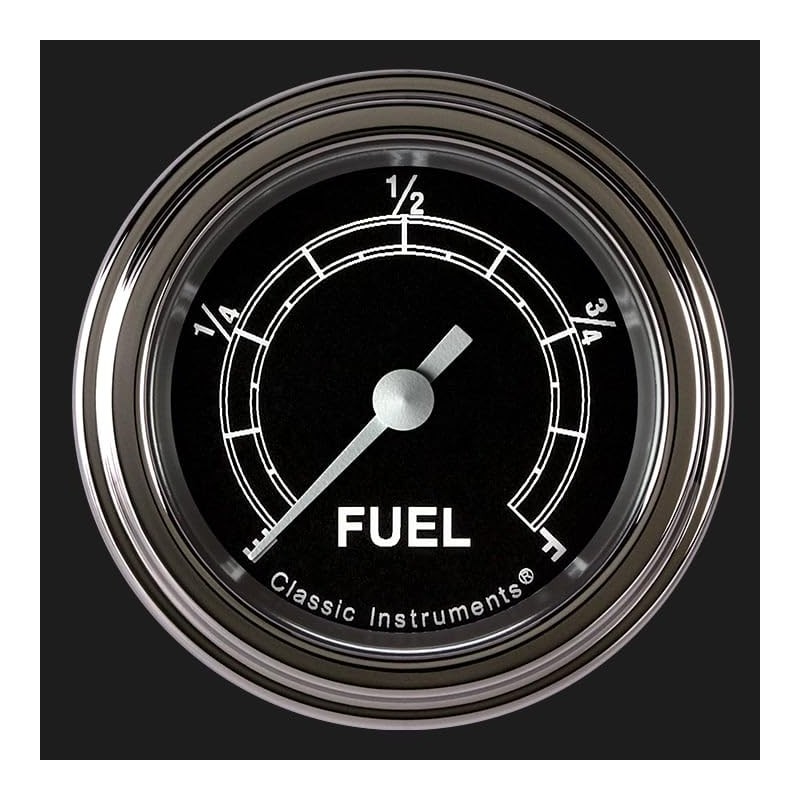 - Traditional 2 1/8" Full sweep fuel level gauge with standard stainless low step bezel and flat glass lens
