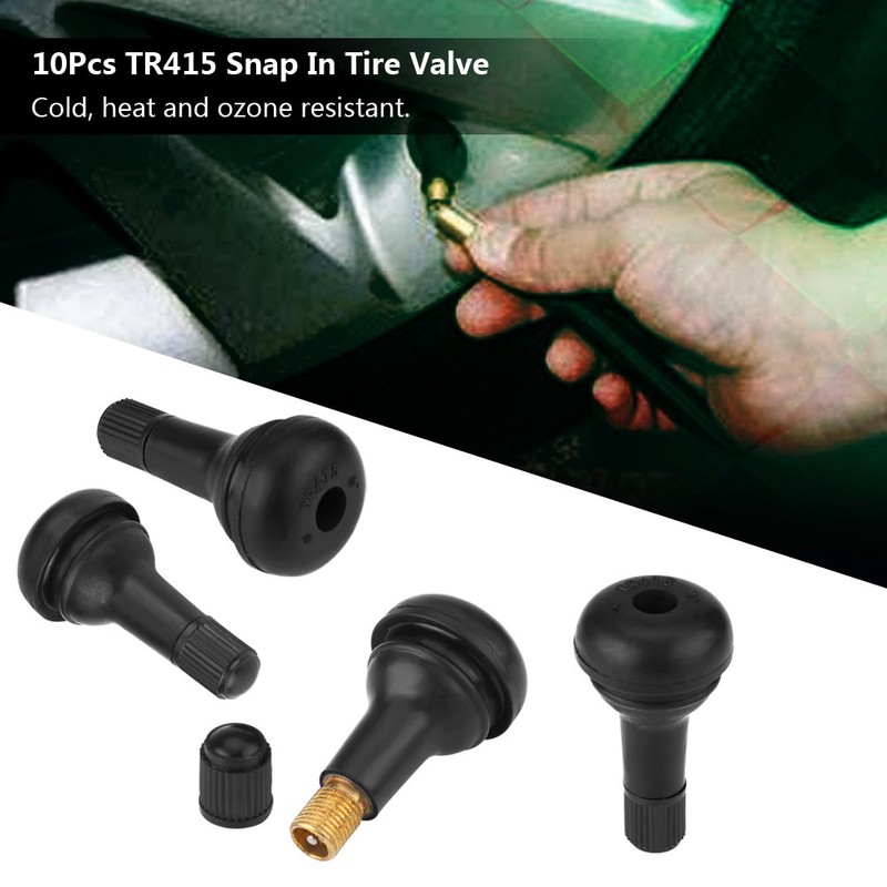 TR415 Rubber Valve Stem Kit High Temperature Snap-in Tyre Valve 10 Pack Black