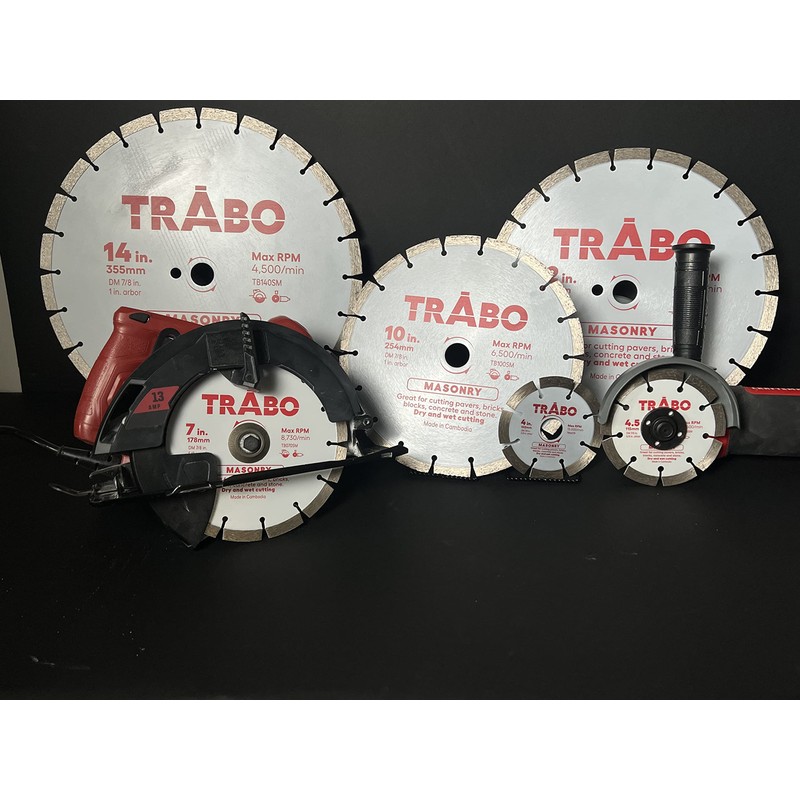 - Every Trabo blade is embedded with diamonds to enable cutting